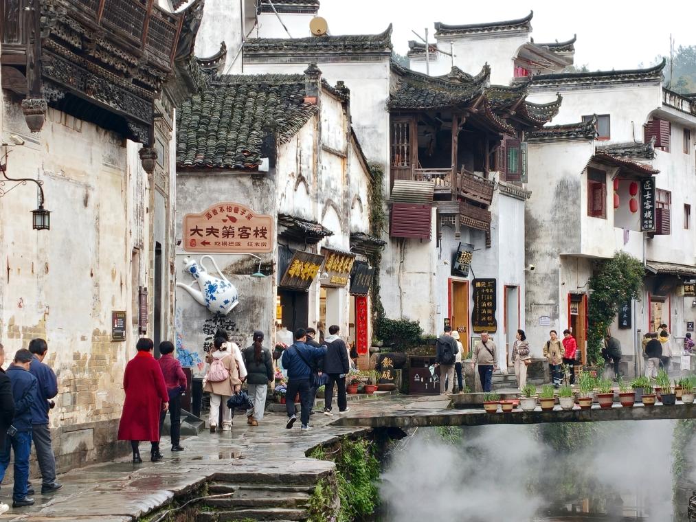 从篁岭的崖上梯田顺山势而下,循着蜿蜒的溪流向西而行,另一番水乡花韵在李坑古村静静铺展。